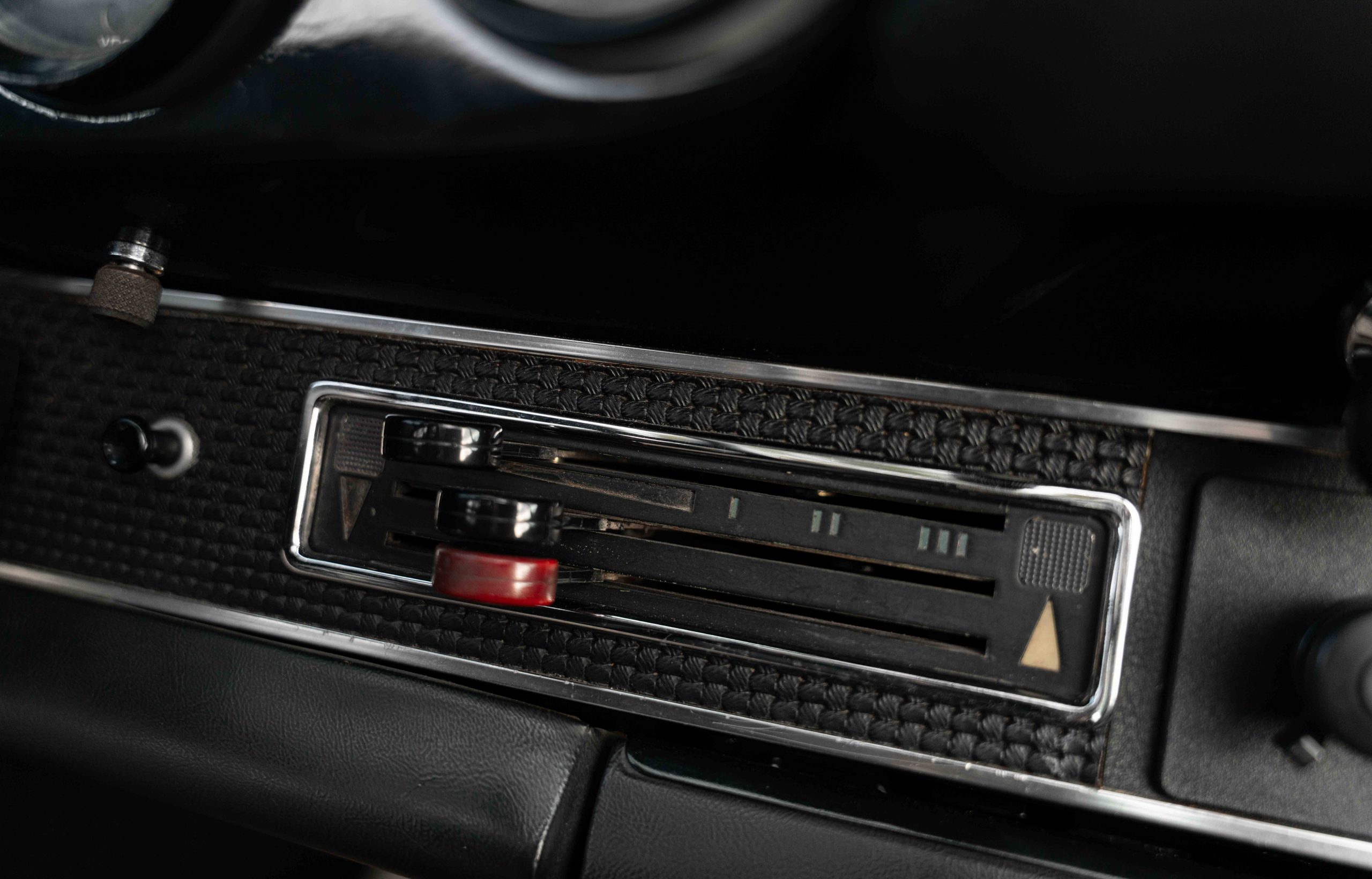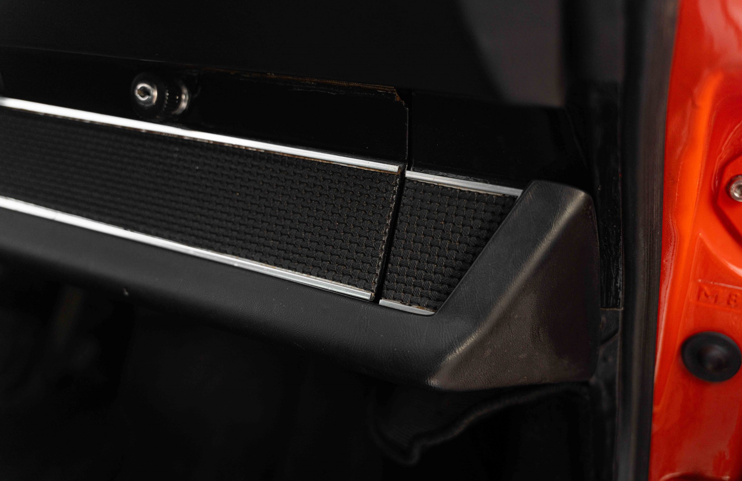L’habitacle est remarquablement conservé. Les sièges affichent une très belle patine, sans déchirure ni affaissement, et les plastiques sont propres et bien maintenus. Le volant, le levier de vitesses et les commandes conservent un aspect d’origine très soigné. La moquette est en bel état, témoignant d’un véhicule soigneusement entretenu.