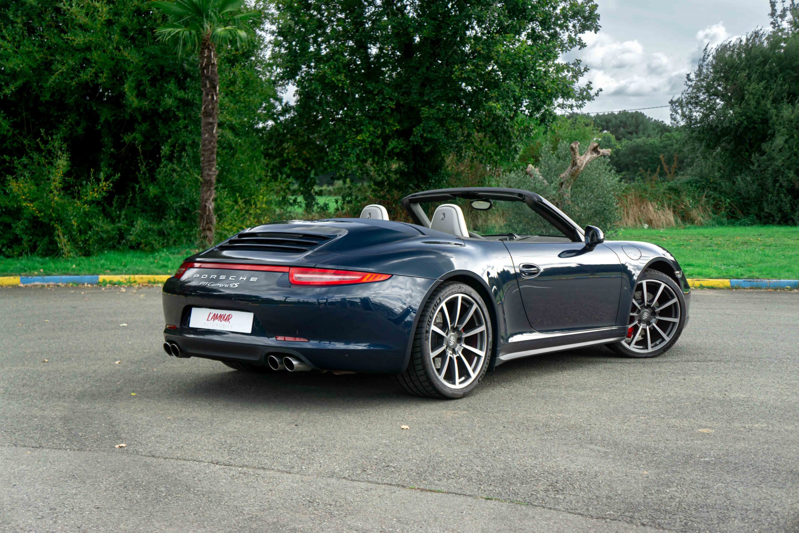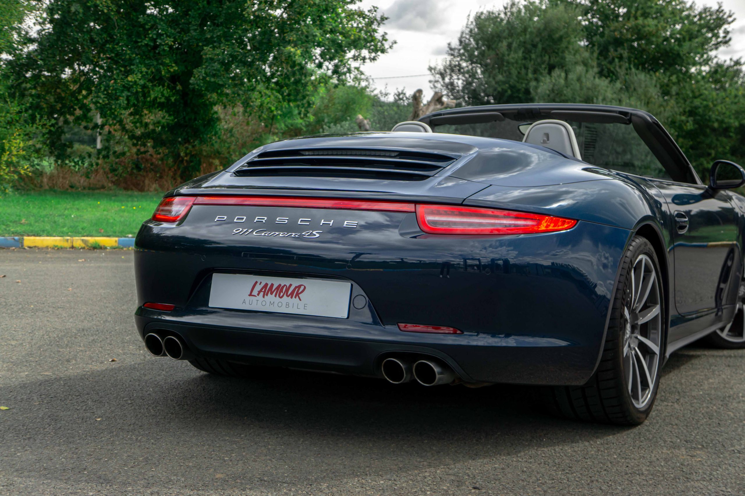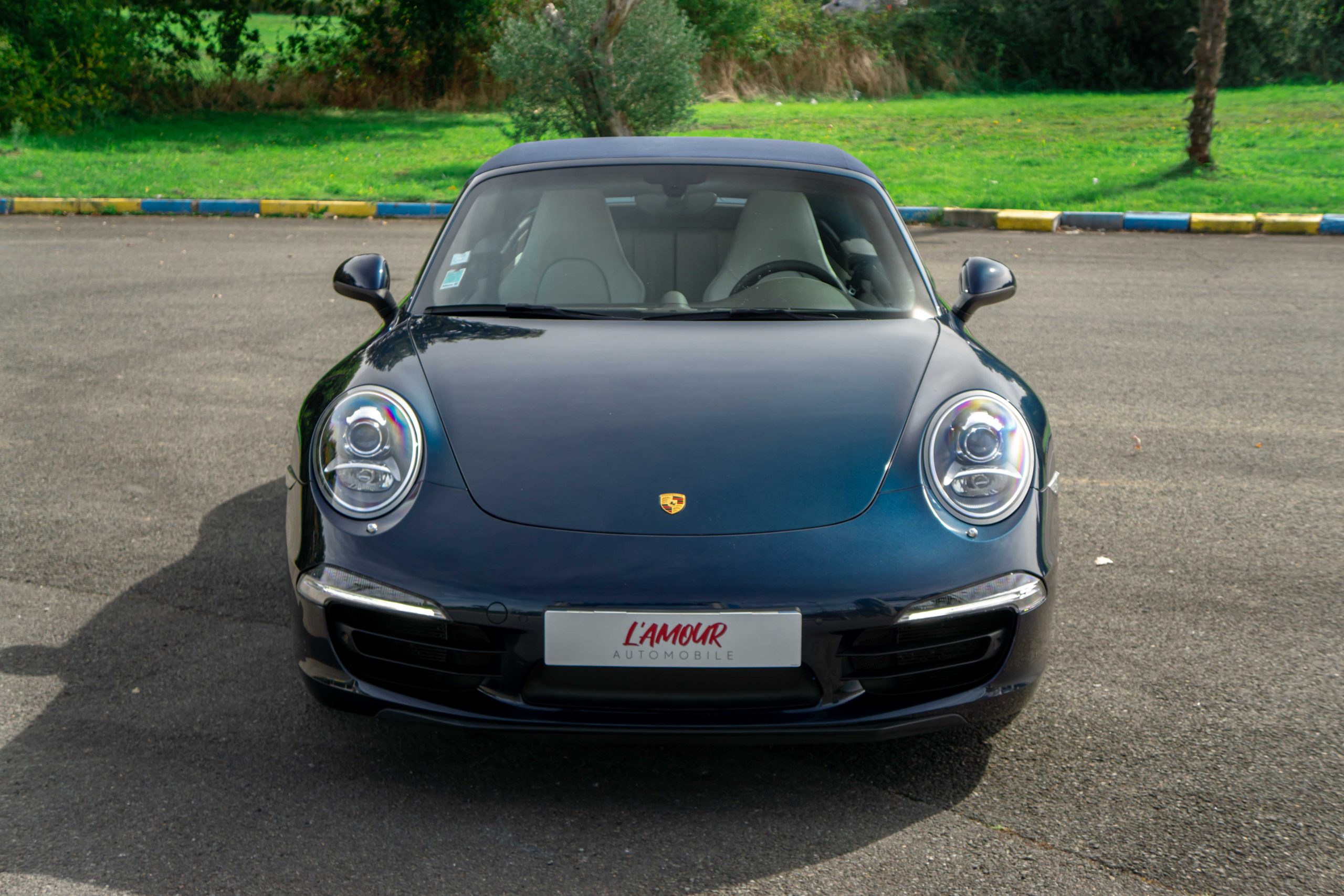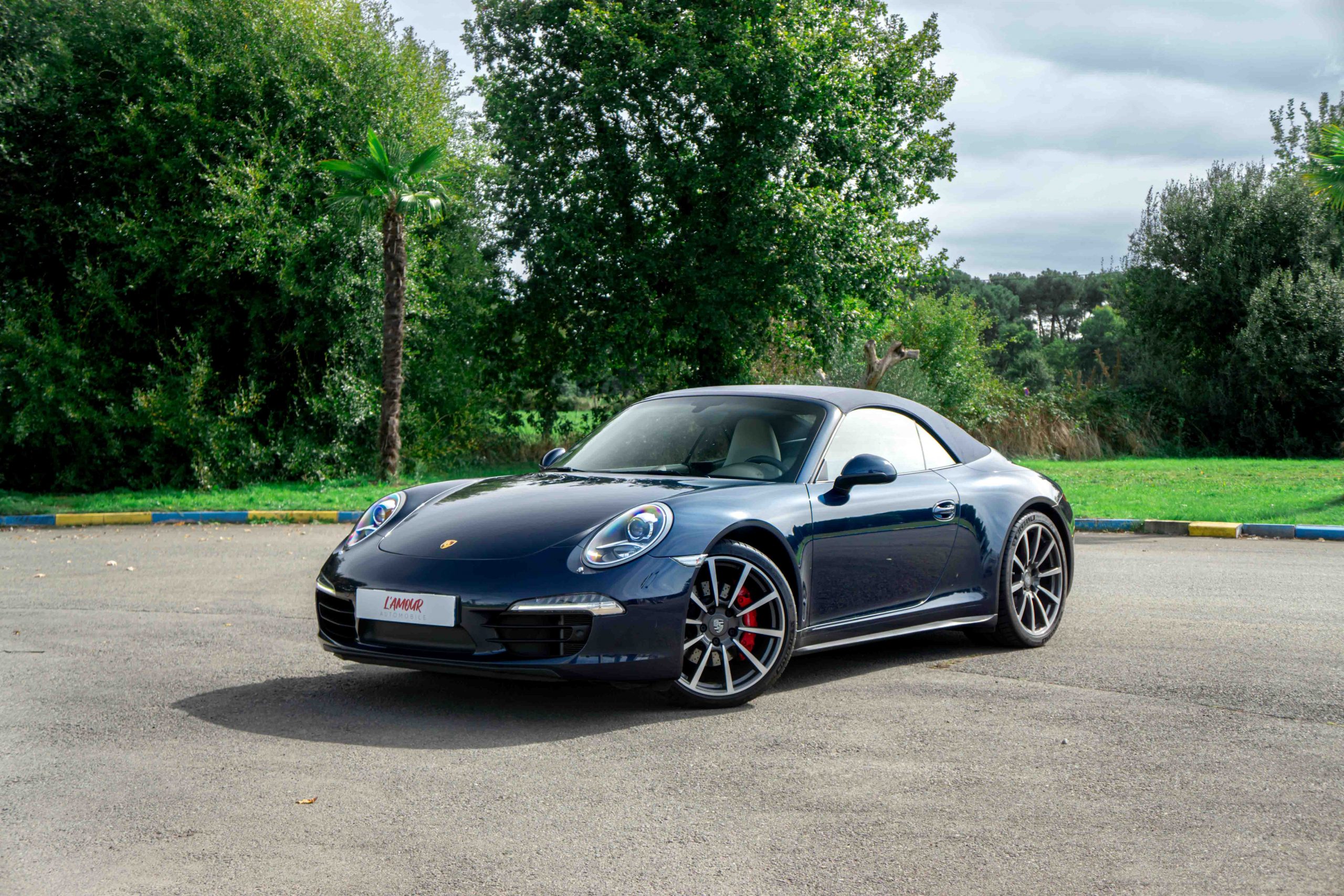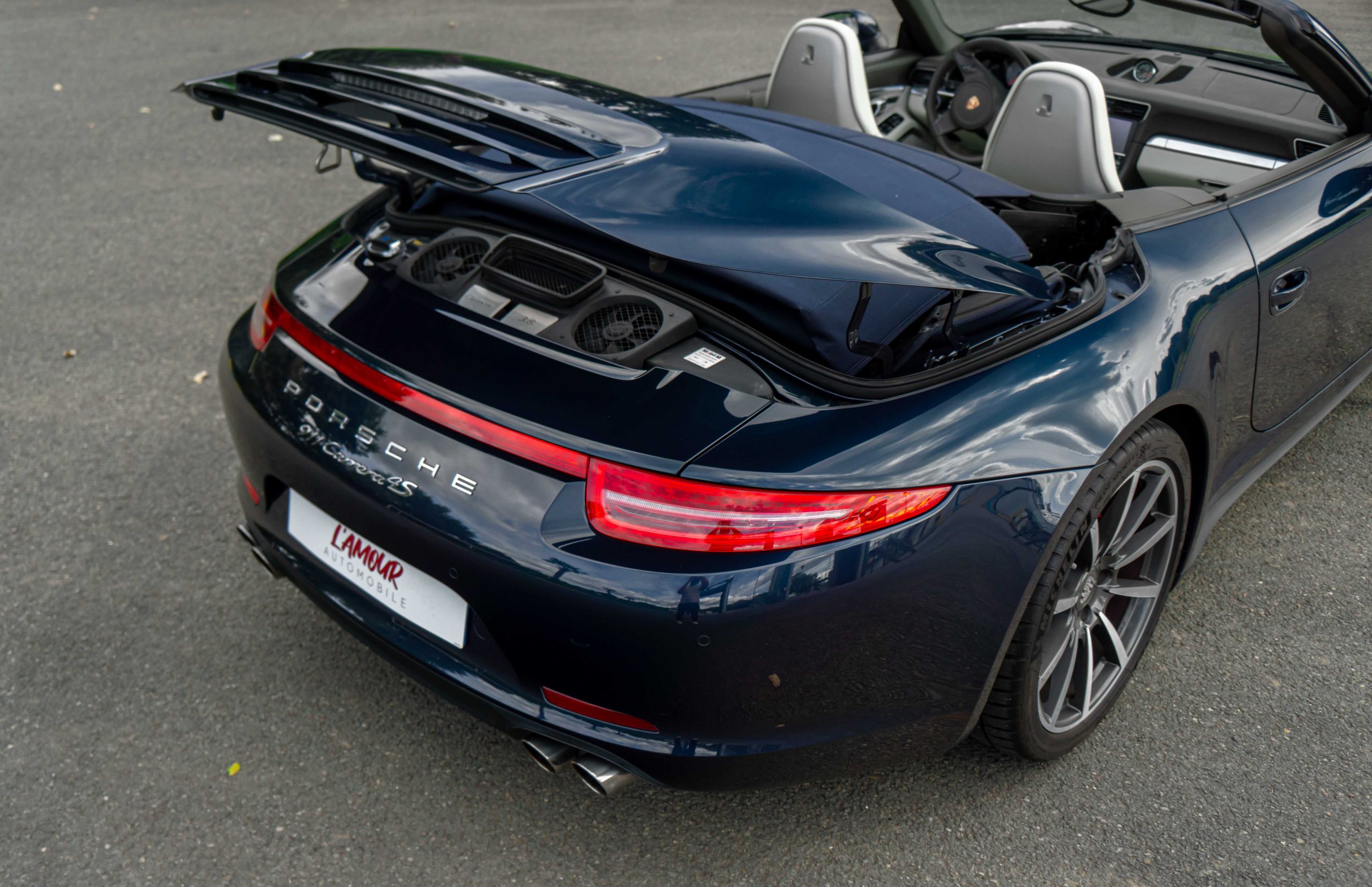 L’Amour Automobile est enchanté de vous présenter cette exceptionnelle 991 4S cabriolet dans une élégante configuration Dark Blue Metallic M5X (Bleu nuit), intérieur bi-ton gris quartz/gris galet BV, capote bleu et jantes Carrera Classic II en 20’’.