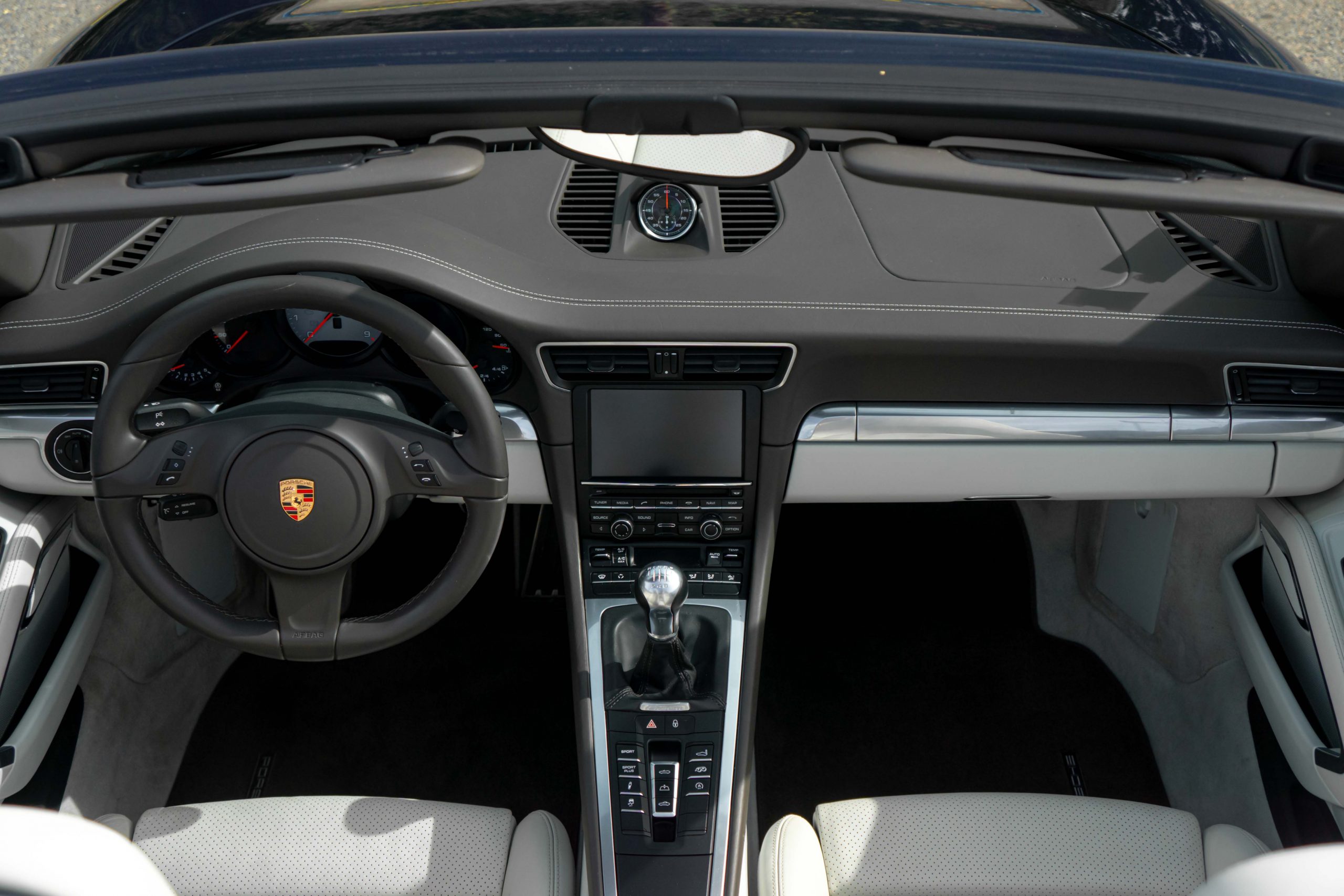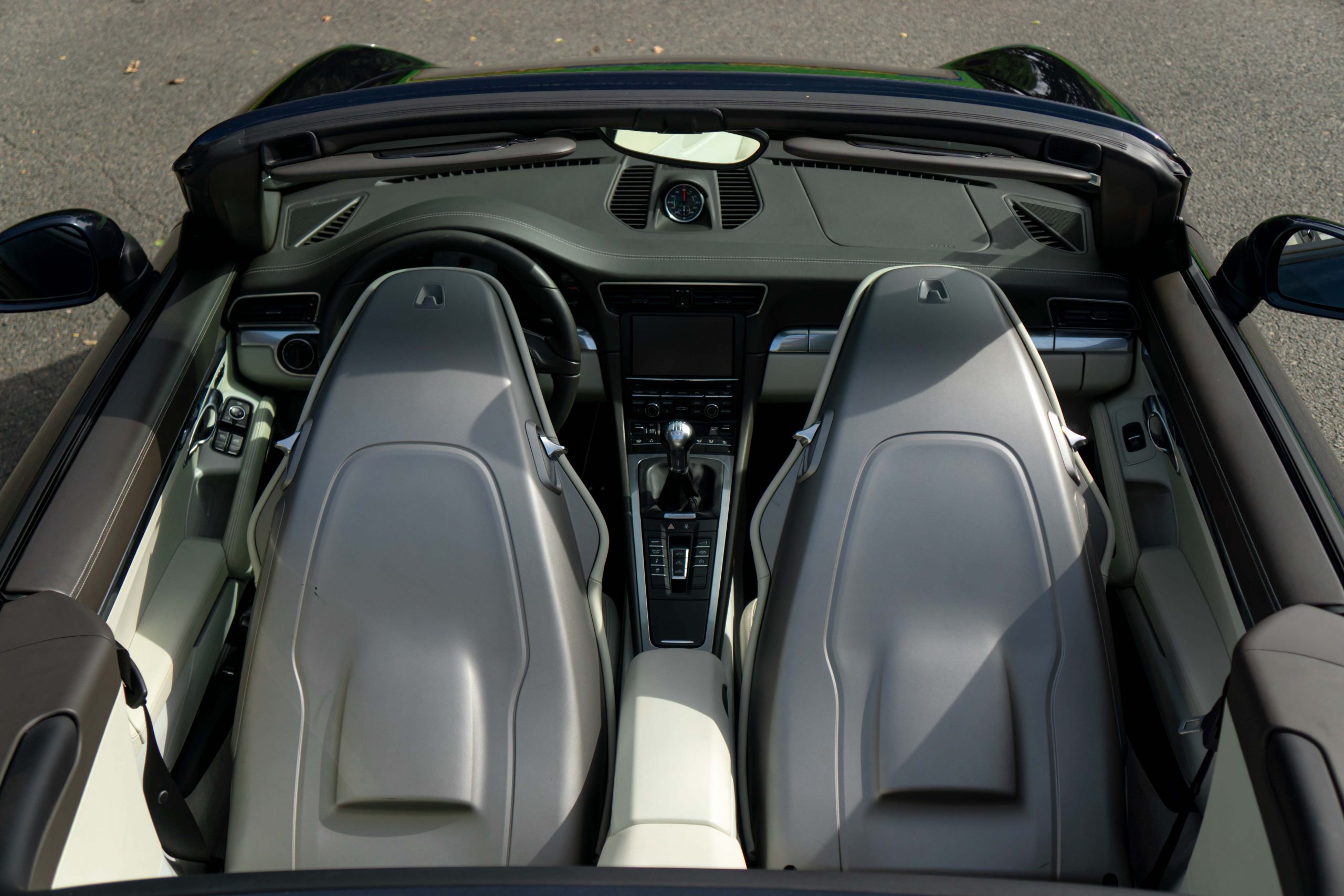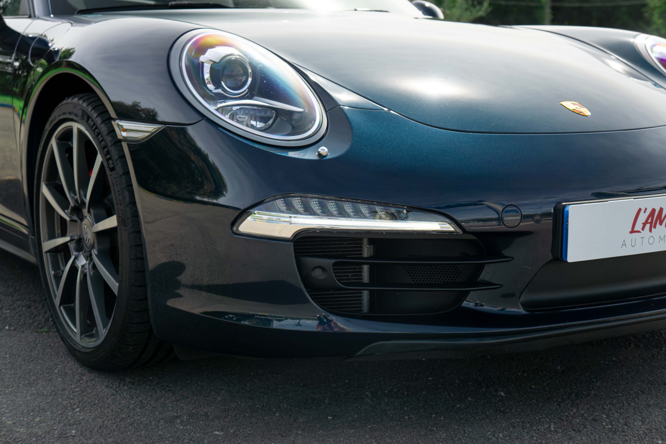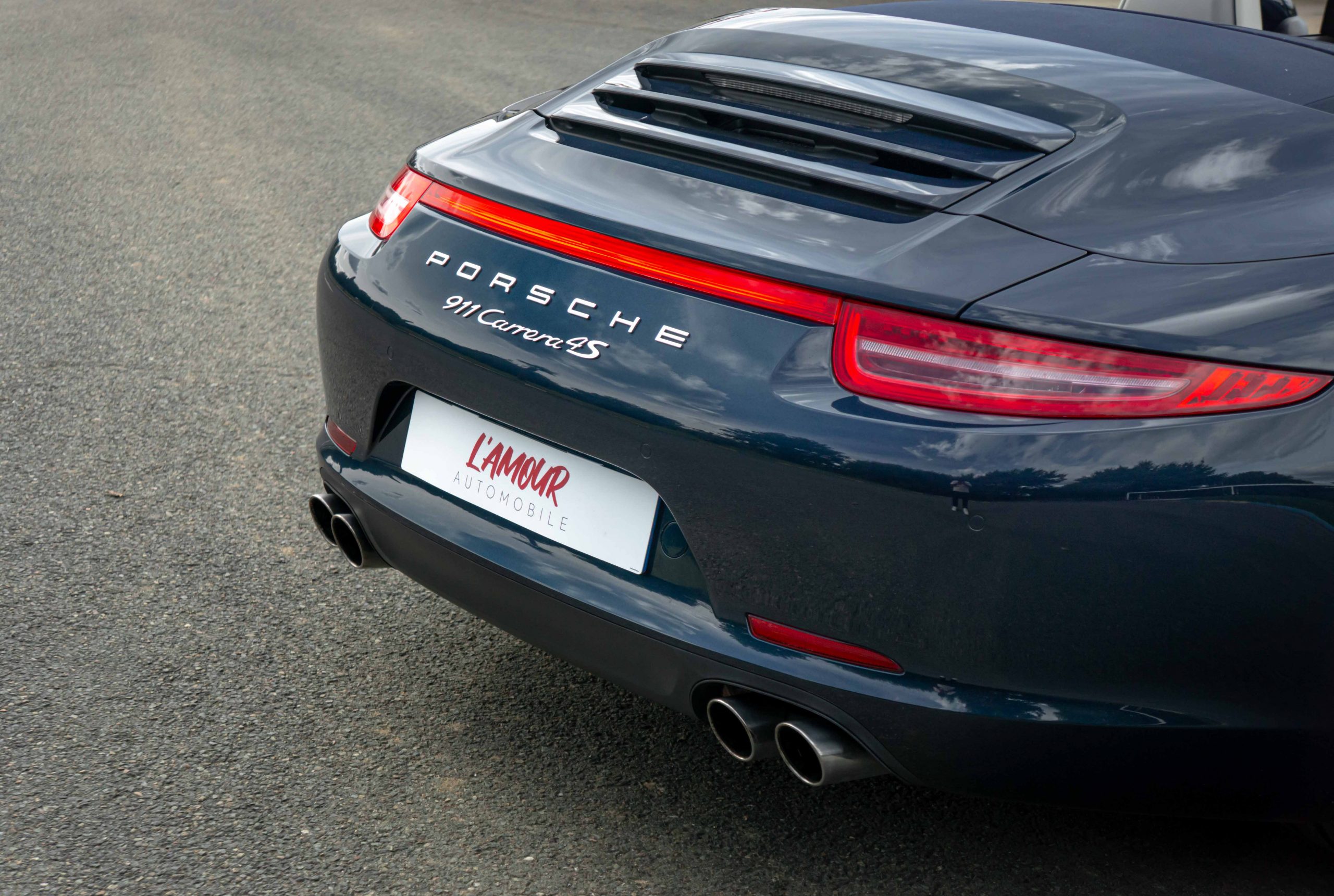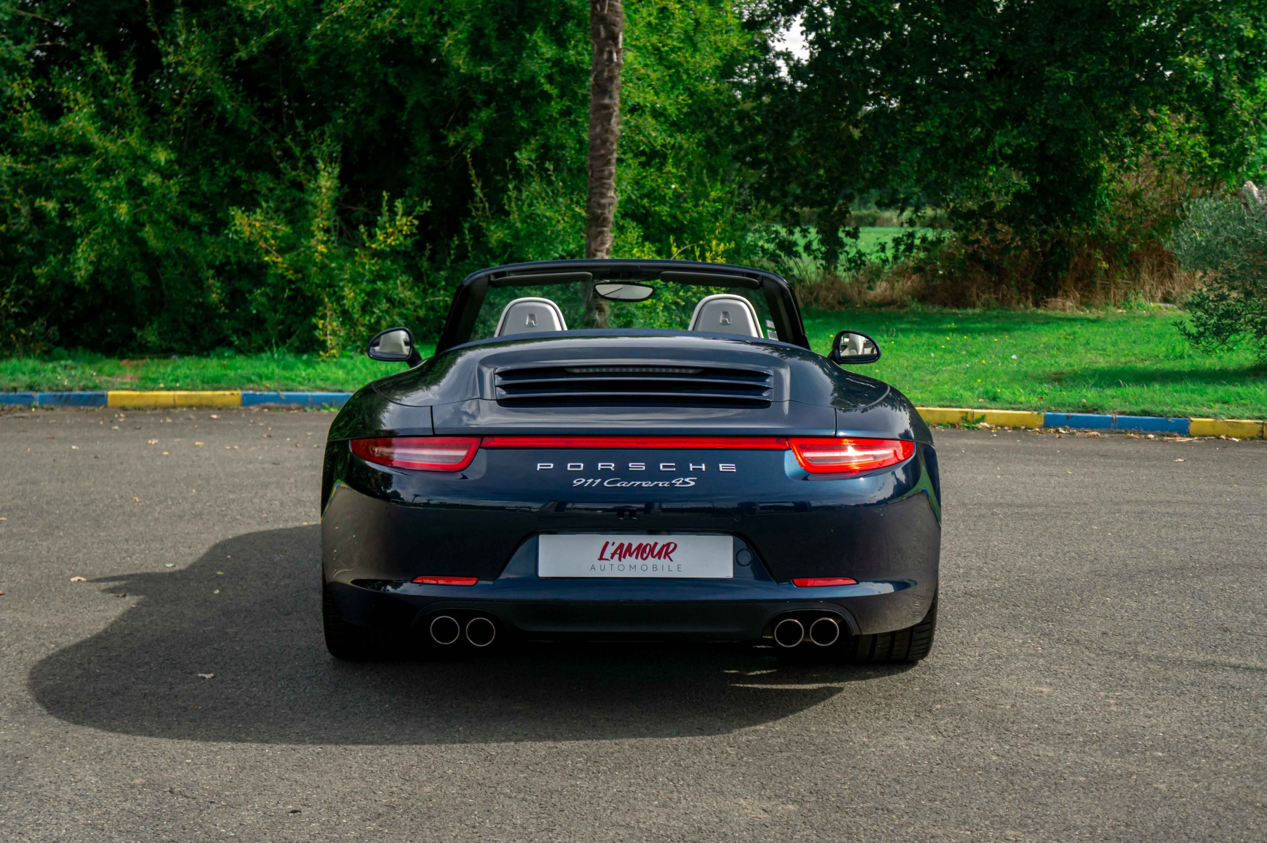 L’Amour Automobile est enchanté de vous présenter cette exceptionnelle 991 4S cabriolet dans une élégante configuration Dark Blue Metallic M5X (Bleu nuit), intérieur bi-ton gris quartz/gris galet BV, capote bleu et jantes Carrera Classic II en 20’’.