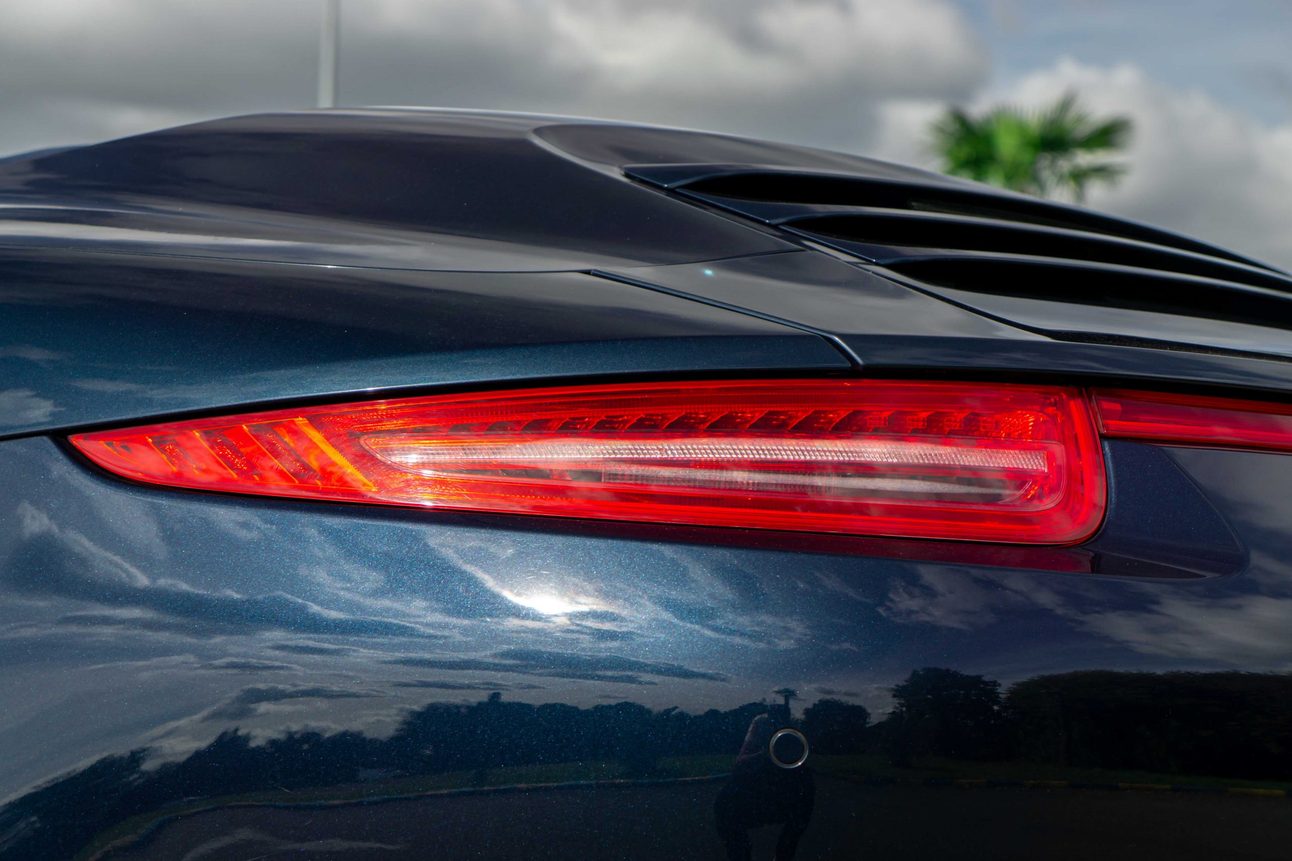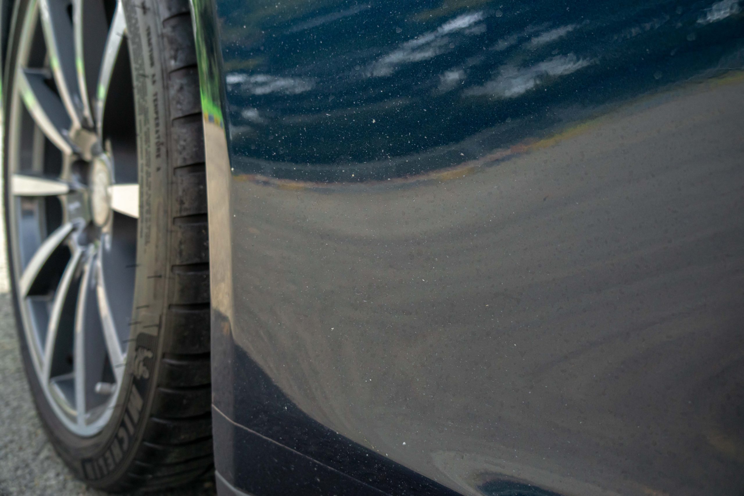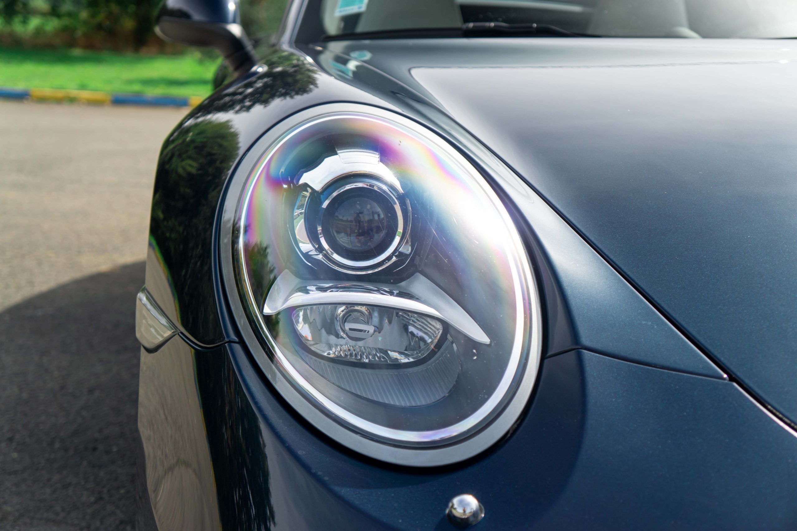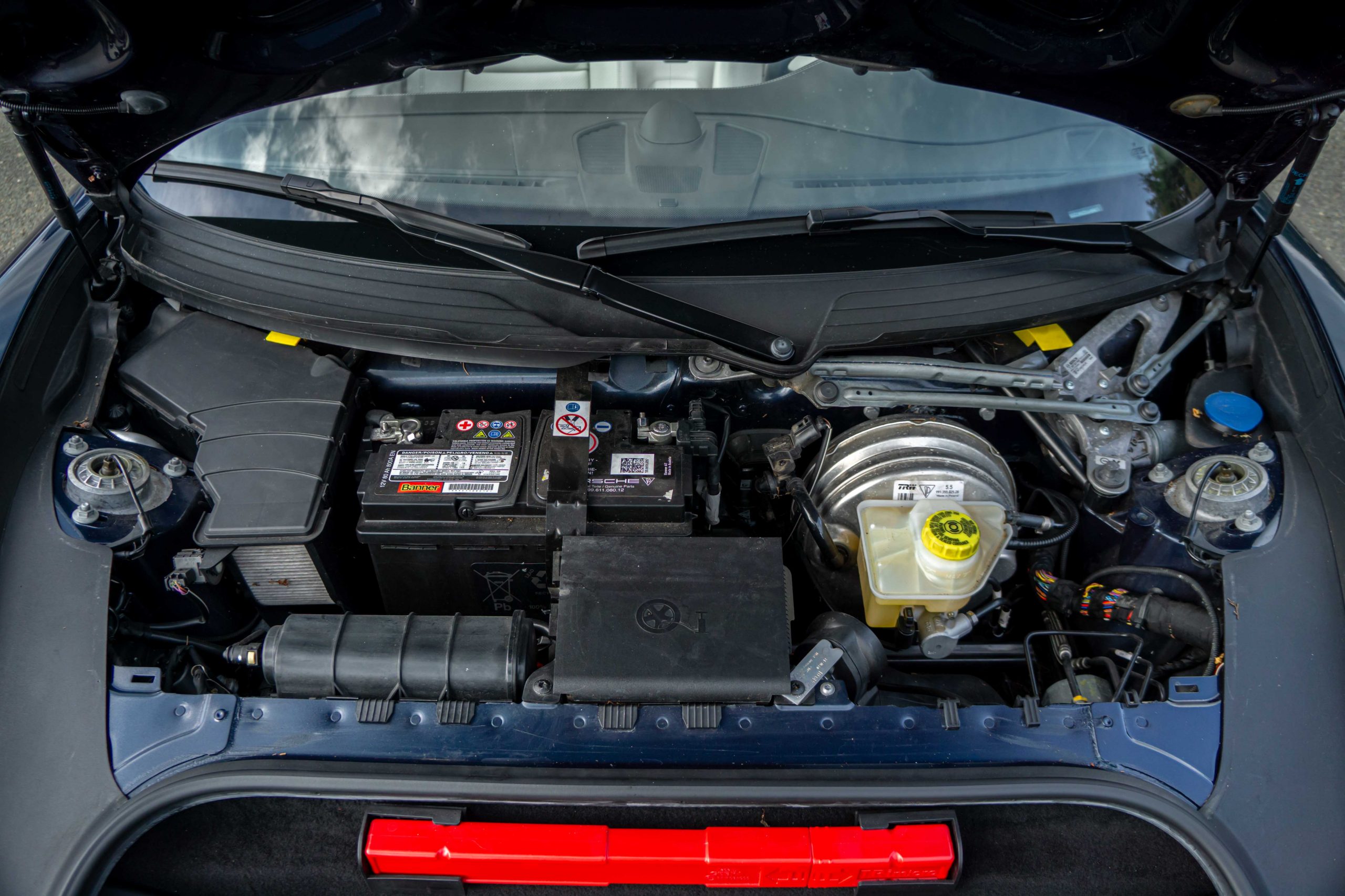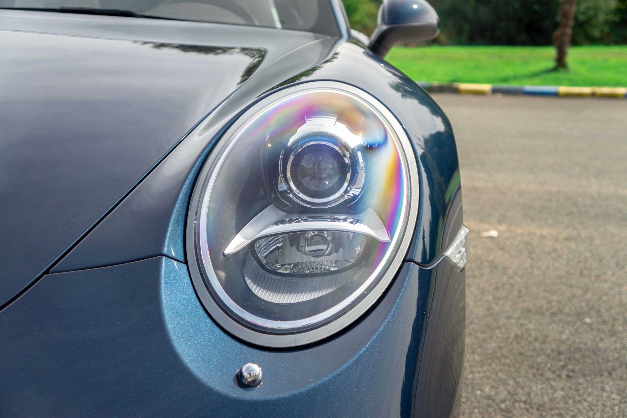 L’extérieur présente bien, la couleur est profonde et se marie à merveille avec l’interlude. Très peu d’impacts sont à signaler sur la face avant. Les deux jantes arrières sont légèrement touchées. La capote est en parfait état et le mécanisme fonctionne parfaitement. Les optiques et le pare-brise ne présente aucune impacts.