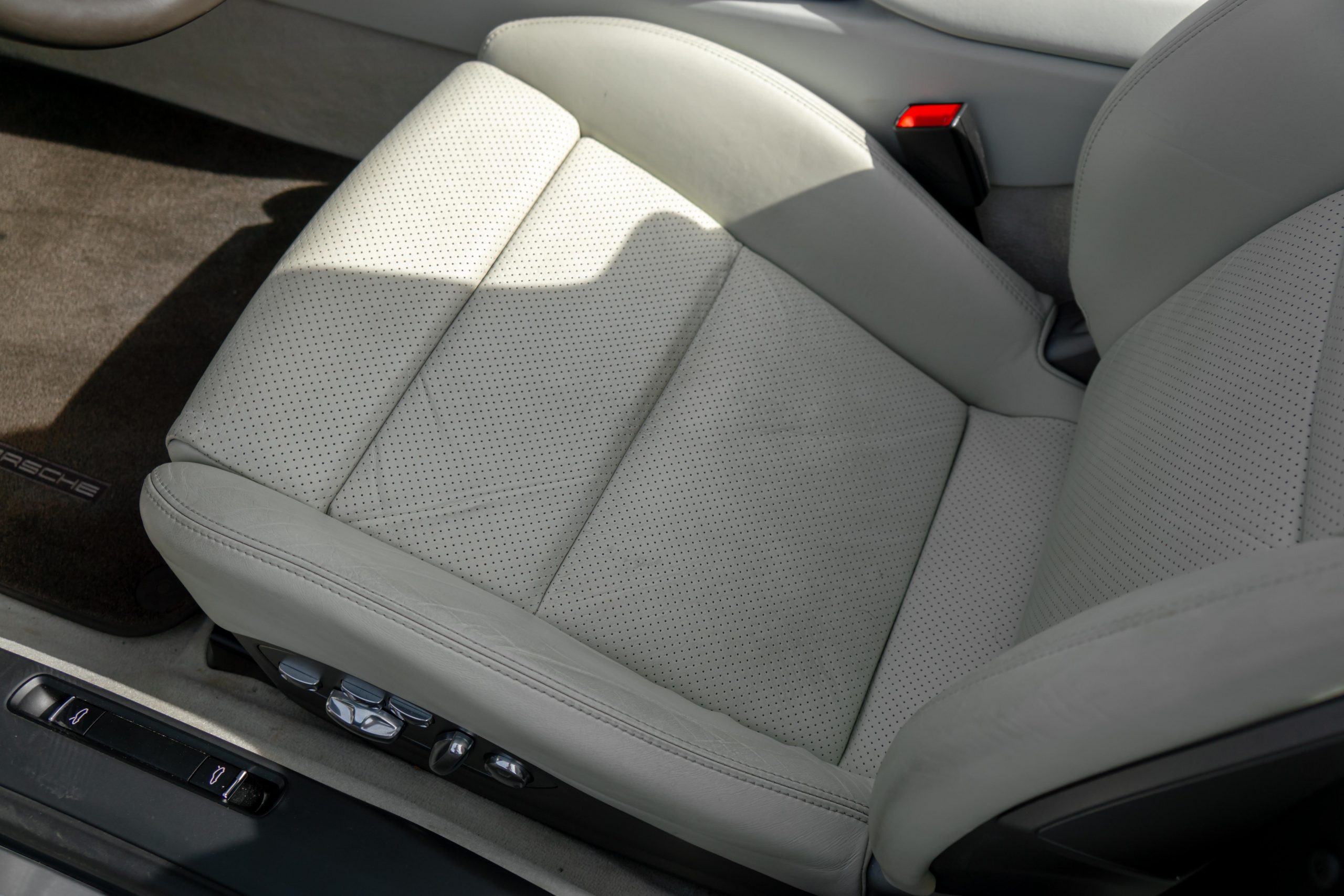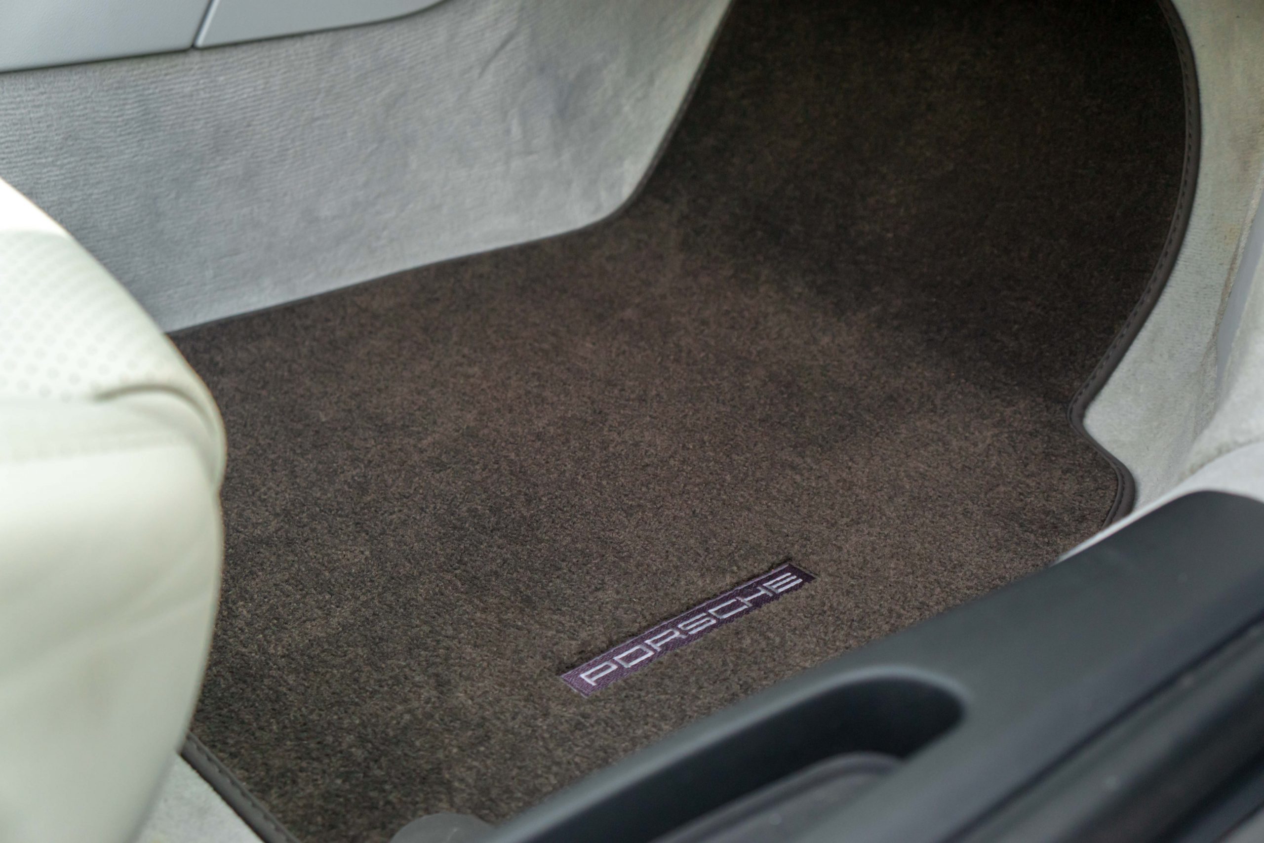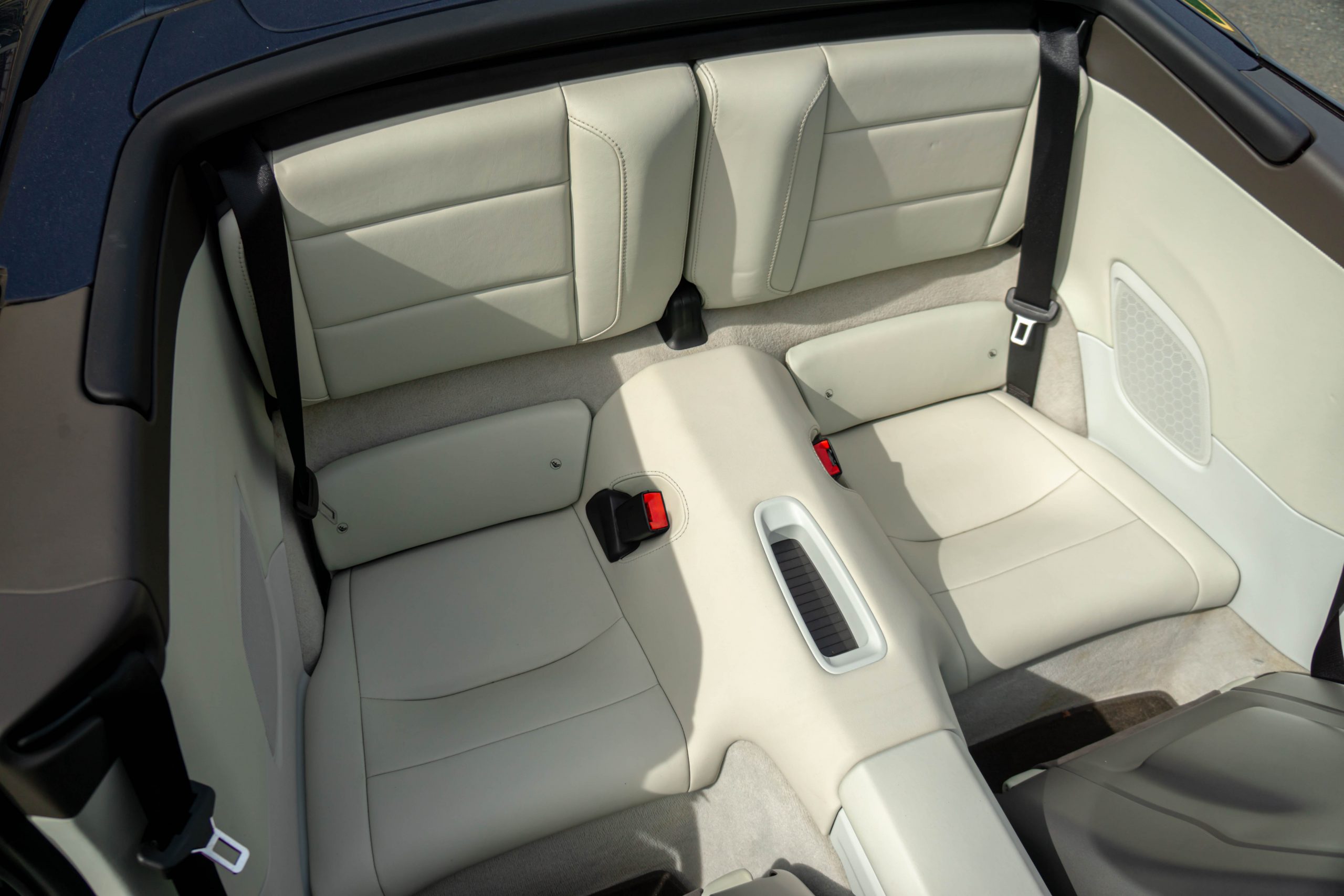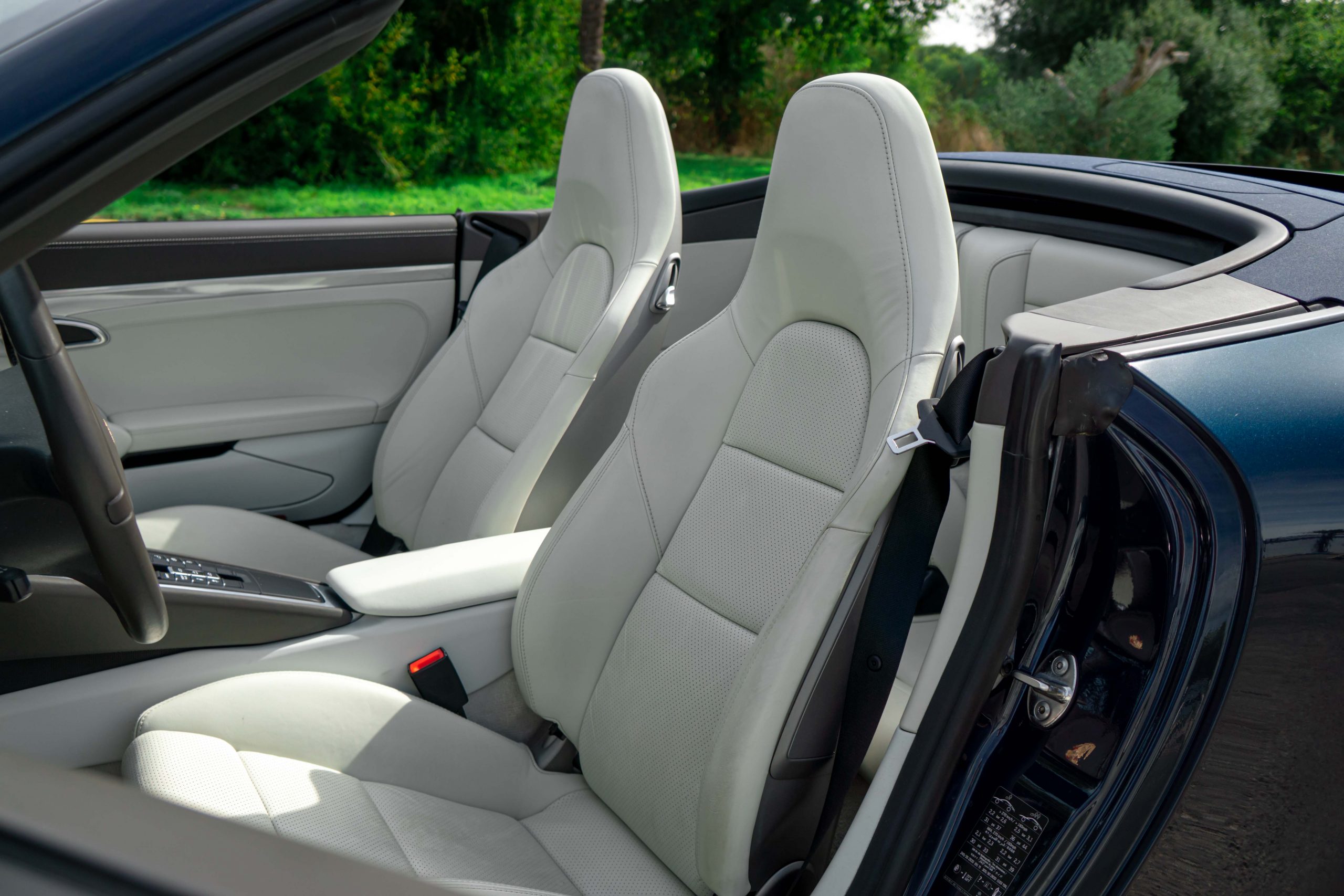Cet exemplaire est en très bon état intérieur. Les sièges et les plastiques ne présentent aucune marque d’usure. Le cuir du volant, du levier de vitesses ainsi que du frein à main est en bon état. Le cuir du tableau de bord et ses coutures sont intacts. Une légère rayure est visible sur le tunnel de boîte de vitesses côté droit, ainsi que sur le seuil de porte conducteur (en plastique). La moquette est propre et les tapis sont en excellent état. L’ensemble présente très bien.