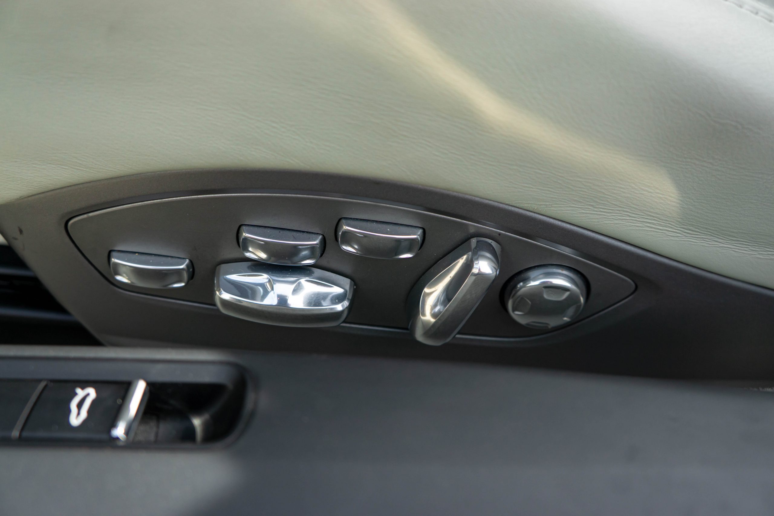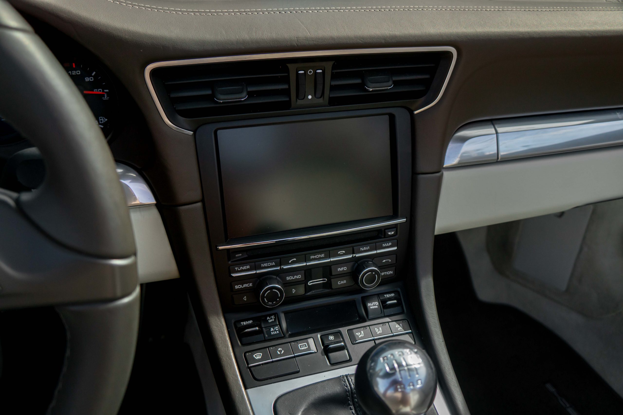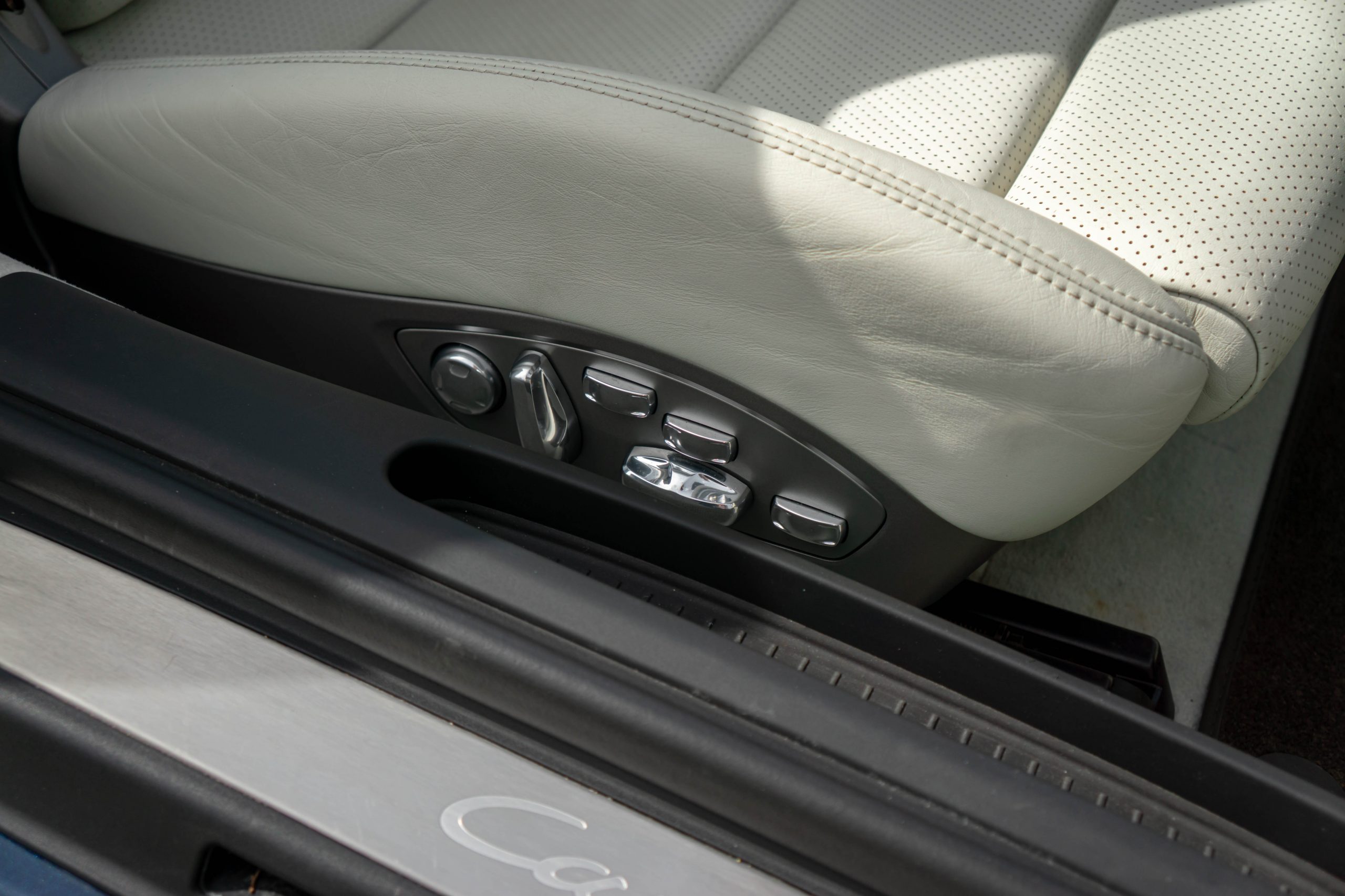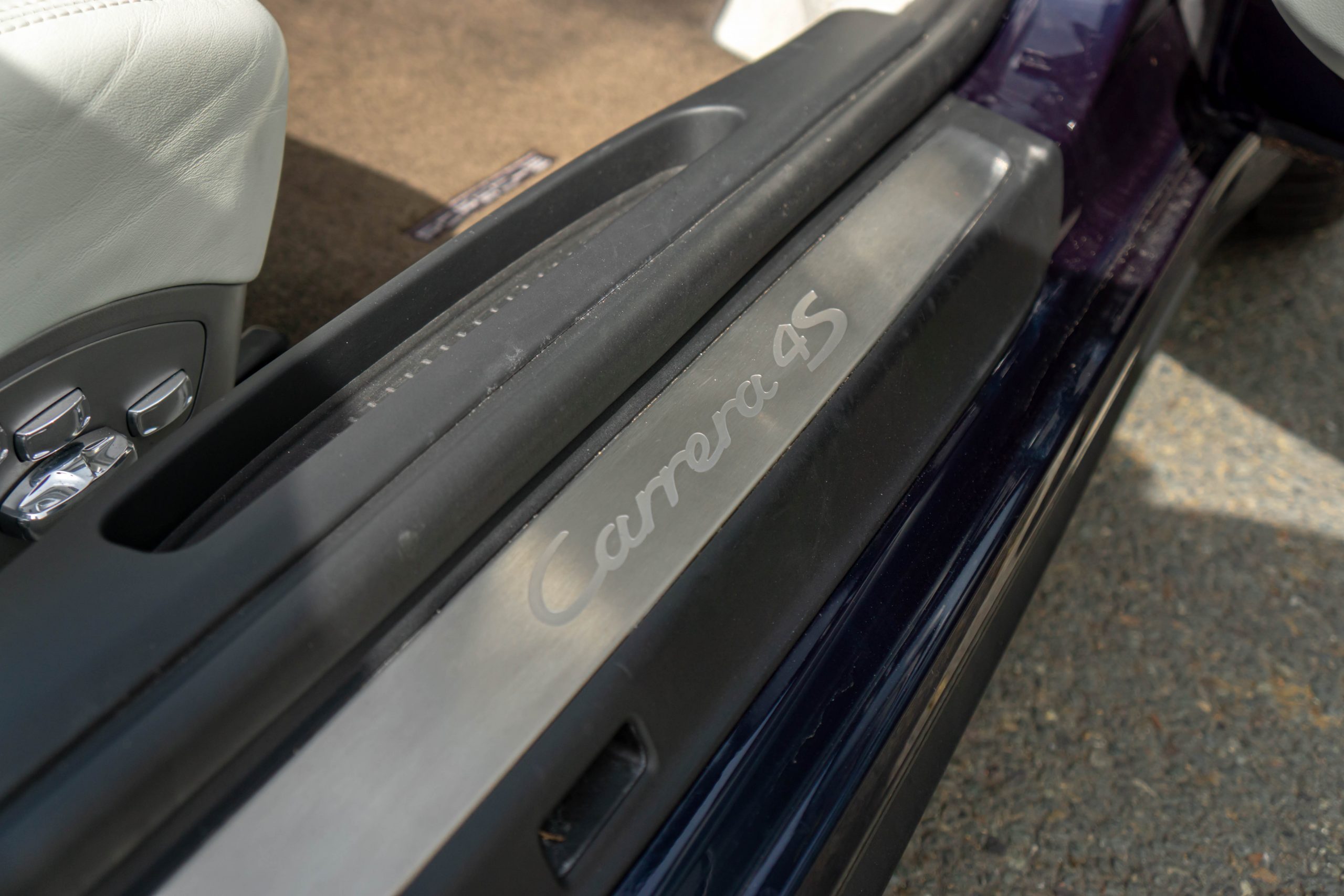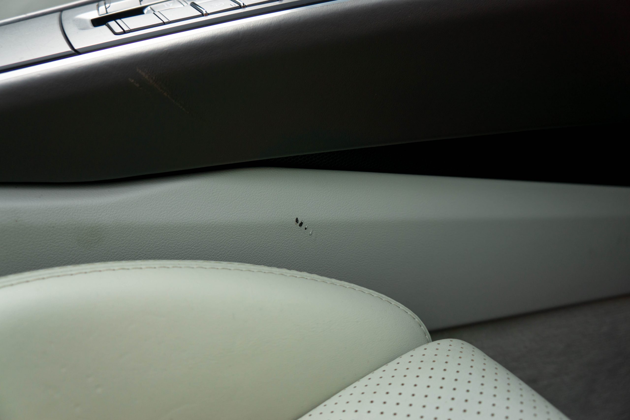 Cet exemplaire est en très bon état intérieur. Les sièges et les plastiques ne présentent aucune marque d’usure. Le cuir du volant, du levier de vitesses ainsi que du frein à main est en bon état. Le cuir du tableau de bord et ses coutures sont intacts. Une légère rayure est visible sur le tunnel de boîte de vitesses côté droit, ainsi que sur le seuil de porte conducteur (en plastique). La moquette est propre et les tapis sont en excellent état. L’ensemble présente très bien.