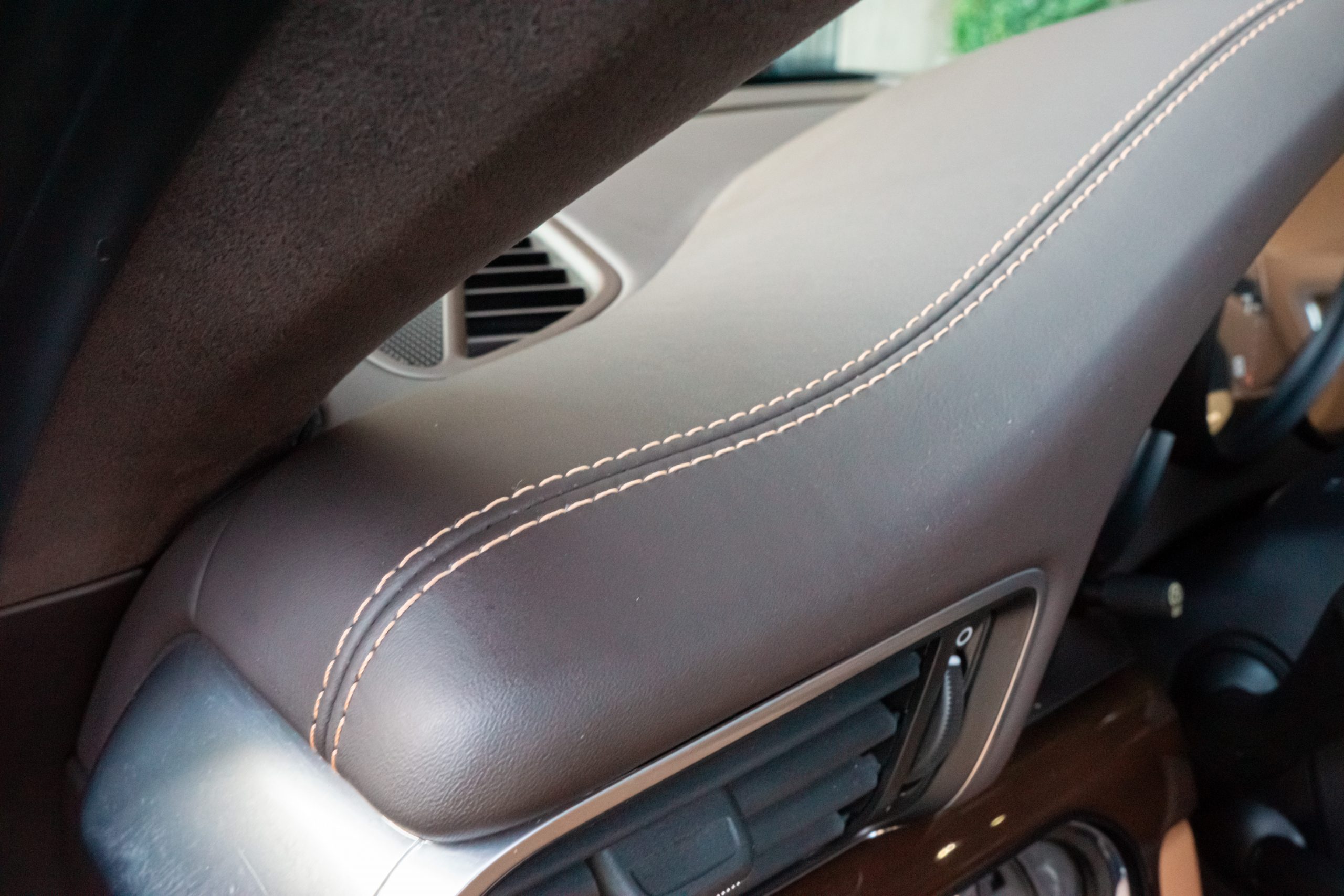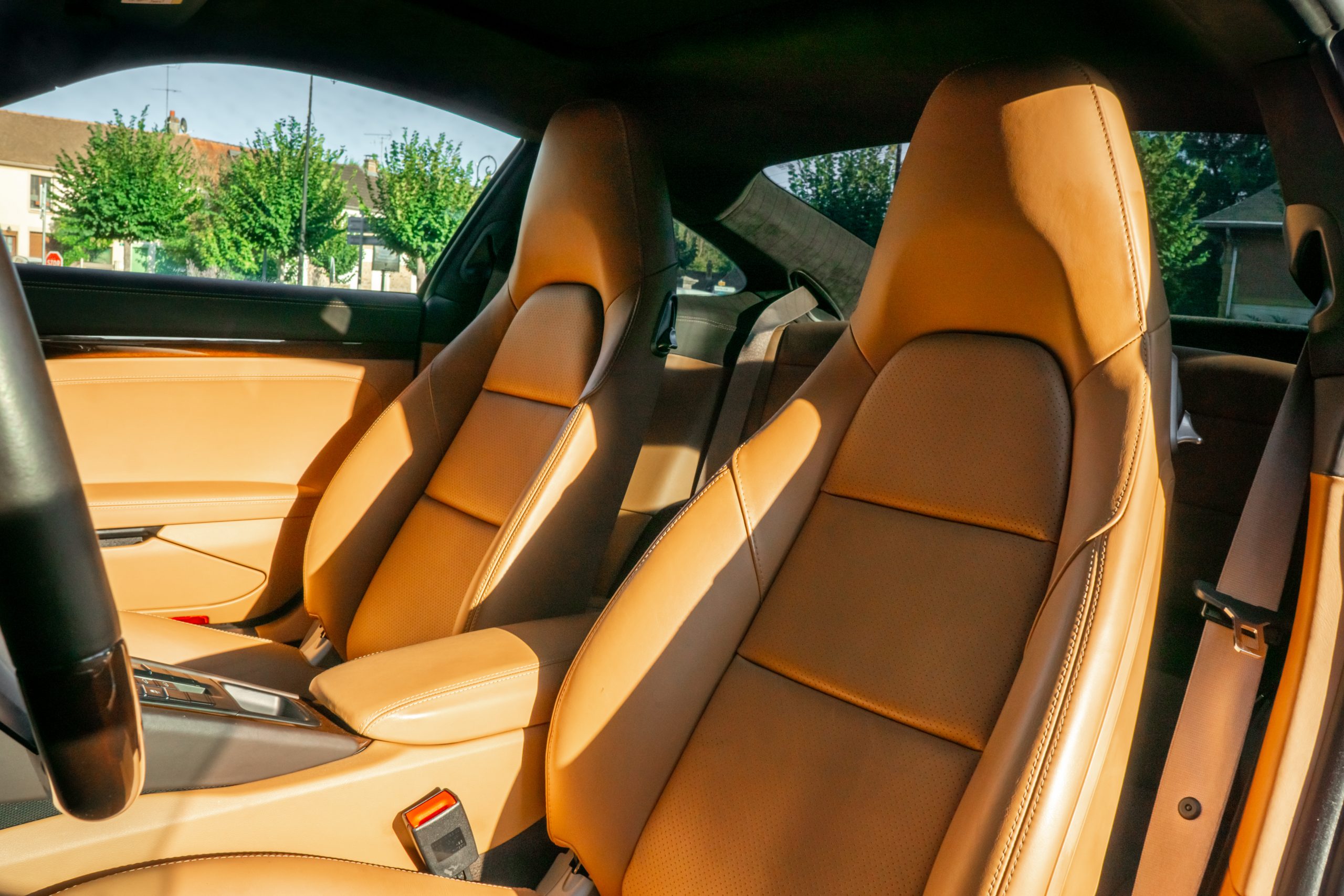 Cet exemplaire est en excellent état intérieur. Les sièges ainsi que les plastiques ne présentent aucune marque d’usure. Il en est de même pour le cuir du volant, du pommeau de vitesse ainsi que du levier de frein à main. Le cuir et les coutures du tableau de bord sont intacts. La moquette et le ciel de toit sont tout aussi propre.