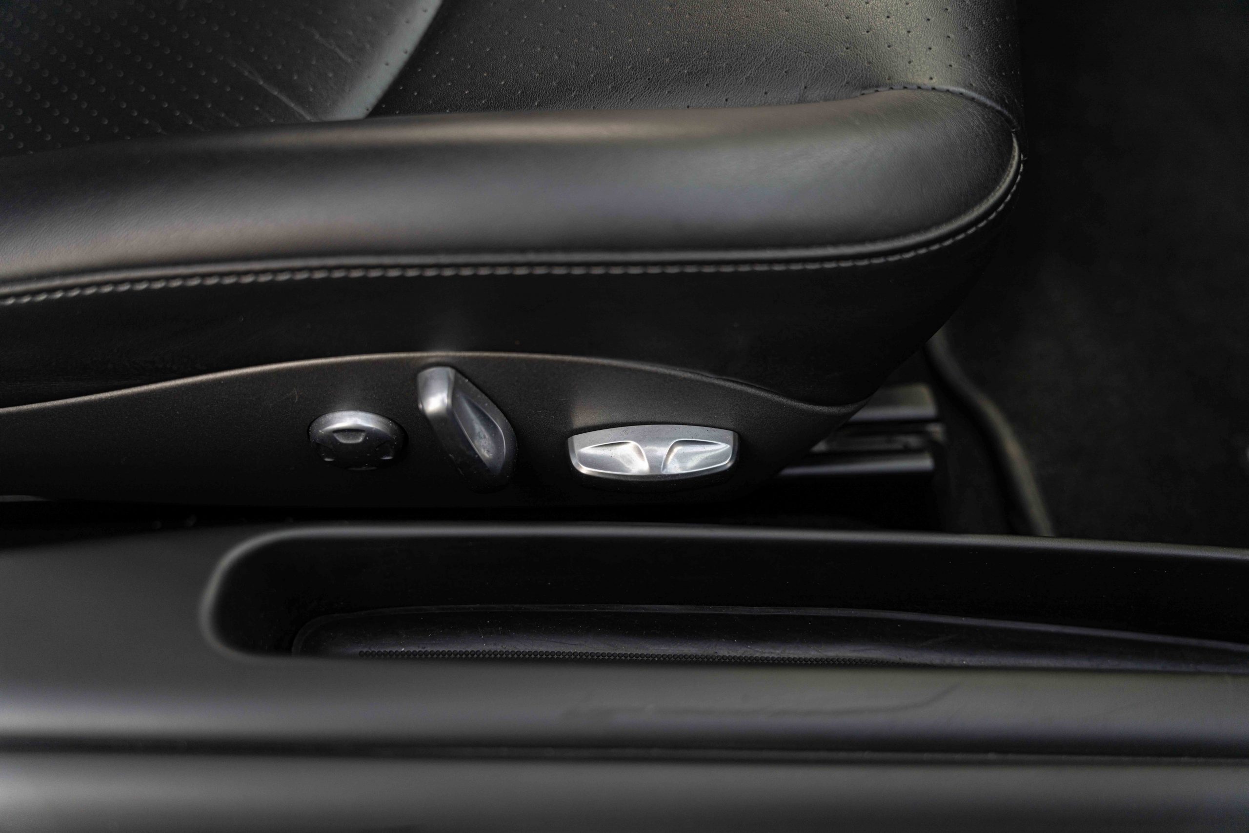 Cet exemplaire, richement optionné, présente un intérieur en excellent état. Les cuirs des sièges, du volant et des panneaux de portes ne montrent aucune marque d’usure et témoignent du soin apporté par ses précédents propriétaires. Les plastiques de la console centrale et des seuils de portes sont également en très bel état.